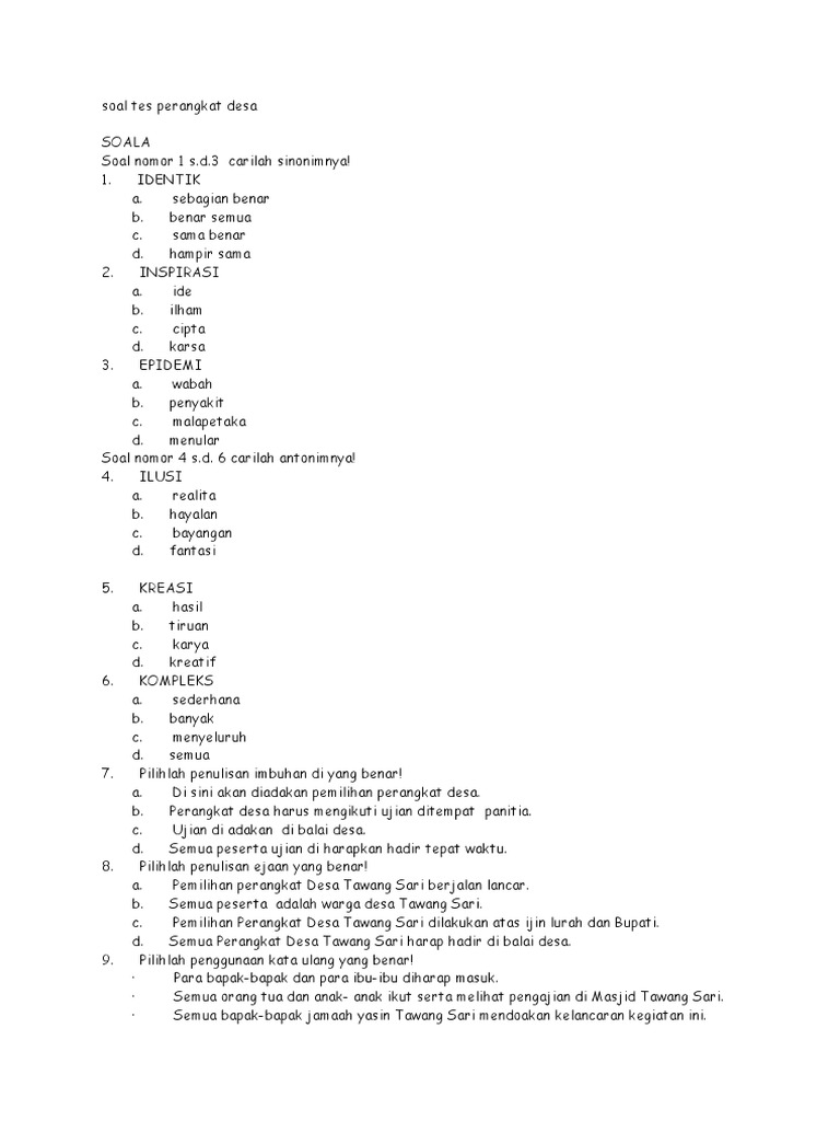 Dibawah ini telah kami sajikan informasi lowongan kerja lulusan sma smk d3 s1 s2 semua jurusan lowongan bank bumn cpns dan swasta lainnya berdasarkan keterkaitan artikel ataupun keterkaitan iklan yang. Bagi anda yang ingin melanjutkan jenjang pendidikan perkuliahan untuk diterima di universitas yang anda. Contoh soal tes potensi akademik (tpa) pos indonesia tahun 2018 mengingat bulan ini pt pos indonesia (persero) membuka rekrutmen (penerimaan) calon karyawan baru, maka kami soalsoalpsikotes menyediakan beberapa contoh soal latihan yang bisa memberikan wawasan. Dokumen soal tes masuk smp 34. Pt torabika eka semesta atau yang biasa disingkat dengan pt tes merupakan sebuah perusahaan terkemuka dan terbesar serta ternama yang bergerak di bidang industri minuman kopi instan torabika yang terkemuka di indonesia dan merupakan anak perusahaan dari mayora group.